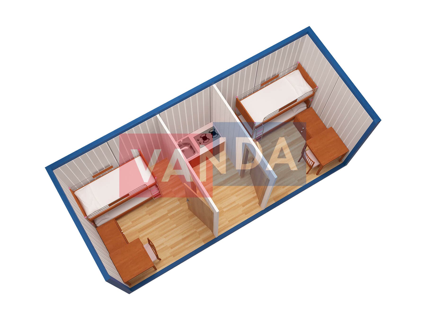 Металлическая бытовка с кухней в тамбуре 5,85 x 2,4 - Оргалит ДВП